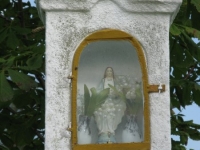 Następna kapliczka znajdują się na północno-zachodnim krańcu wsi, tuż za zabudowaniami przy drodze polnej prowadzącej na wzgórze. Krzyż stoi przy tej samej drodze, ale już na polach nad Wolą Sękową.
