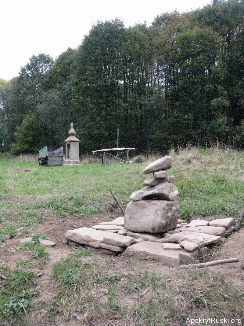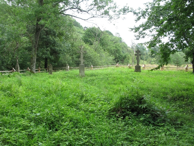 Zdjęcia nr 02 (za drzewem, w głębi), 07, 32 i 54 przedstawiają zarazem miejsce po cerkwi świętych Kosmy i Damiana, drewnianej, zbudowanej w 1780 r. Zniszczona w następstwie deportacji wiernych w latach 1945-1947; w latach 70. XX w. ślad po świątyni rozbieranej na materiał ostatecznie zniknął.
