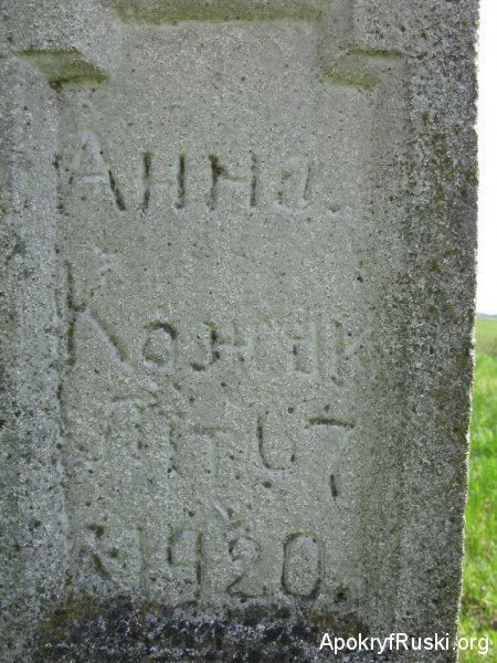 […] to stało się na święto Objawienia Pańskiego w 1946 roku. Poszliśmy do Chotyńca poświęcić wodę, bo w naszym [przysiółku] Dąbrowa nie było cerkwi. Wieczorem przylatuje do nas jeden mężczyzna z naszej wsi, nazywał się Ołeksa Paluszek. „Chodźcie – mówi – bo wielka bieda, napadli na nas i stała się wielka bieda!”. Ludzie zaczęli biec do domu. Przychodzimy, a nadjeżdża wojsko z kulami zapalającymi, a wszystkie domy kryte były słomą. Jak zaczęli palić, jak zaczęli chodzić i mordować naszych ludzi, jak zaczęli tymi zapalającymi kulami strzelać. Uciekłam (już mi się ręce trzęsą), mama i tato zostali. Gdy wróciłam na drugi dzień z Zaleskiej Woli, to opowiadali. Po podpaleniu domu Bodnara Hryńka wojsko przygnało go, zbitego, do nas, strasznie zbitego. „Gdzie jest – pyta się on – twój syn?”. Tato mówi, że poszedł na front. Wojacy wyprowadzili tata, mamę i tego Bodnara na podwórze, ustawili w jednym rzędzie. Wojak wystrzelił najpierw w mojego ojca, drugą kulą w Bodnara, a mama, ujrzawszy, jak zastrzelony został jeden i drugi, uciekła pod wielki krzak naszego agrestu. „Bug przesłonił mu wzrok i nie zobaczył, że tam jestem” [– powiedziała potem]. Mama usłyszała, że szli koło domu, mówiąc: „W tej chałupie wszystkie pobite”, i podpalili dom. Spaliła się krowa, kury i całe zboże, i tato się spalił, i ten Bodnar się spalił. […]