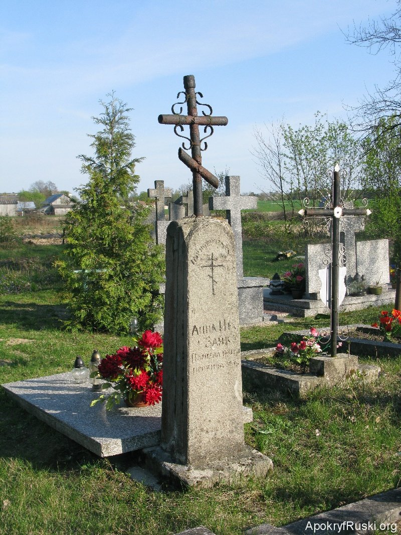 Niedokończoną cerkiew prawosławną pw. Narodzin Bogurodzicy, wznoszona na miejscu greckokatolickiej z 1609 r., mieli spalić carscy kozacy podczas I wojny światowej. Informacji powyższej, zaczerpniętej z tablicy informacyjnej obok cerkwiska, nie wiadomo czy można wierzyć ze względu na niską skłonność kozaków rosyjskich do niszczenia cerkwi prawosławnych (dlatego można przypuszczać, że mogła być rozebrana w ranach antyprawosławnej i antyukraińskiej reakcji miejscowych księży rzymskokatolickich tuż po I wojnie). Zresztą informacja ta zawiera błąd w tej postaci, iż kozacy w 1915 r. mieli spalić drewnianą cerkiew unicką, tymczasem jak wiadomo, że tuz przed wybuchem wojny rozpoczęły się prace budowlane nad nową cerkwią [Słobodian, 236]. Dwie ostatnie fotografie przedstawiają widok wzgórze cerkiewnego, którego stok zajęty został przez polski pomnik niepodległościowy z napisem “Boże coś Polskę”.
